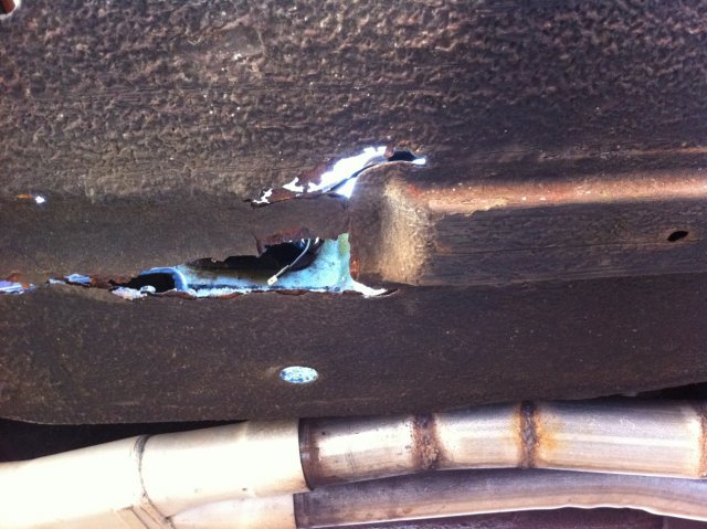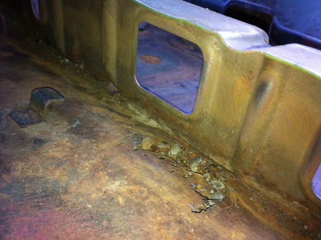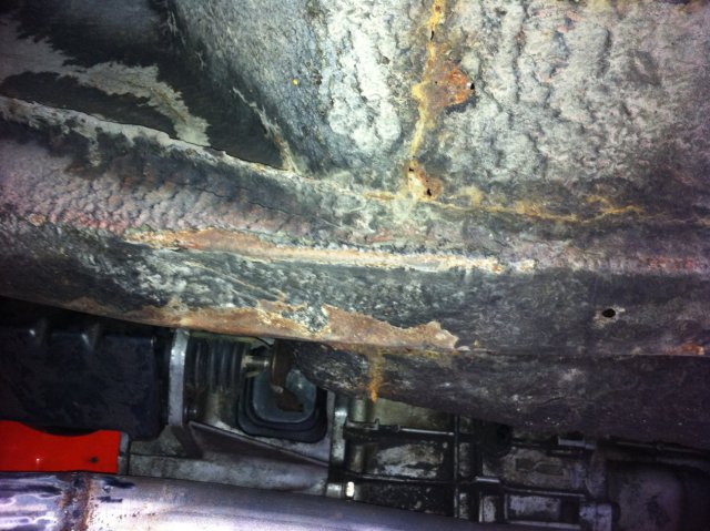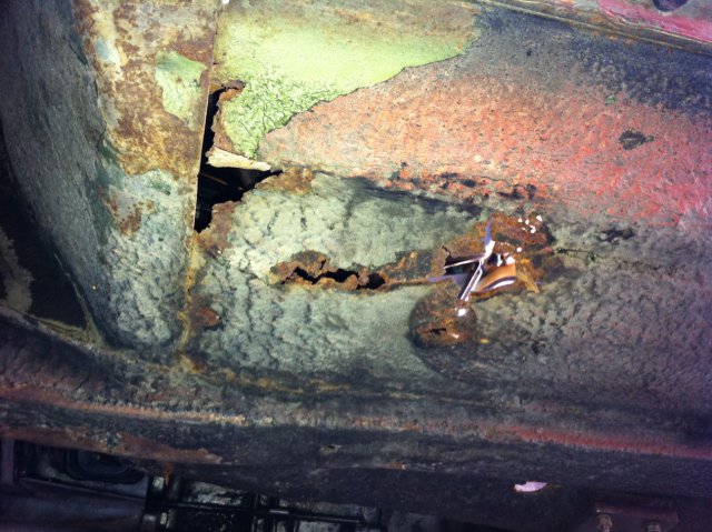 Just bought my 240 last week. Bought it from another state; went and picked it up. Was told of and saw some photos of the floorboard rust, but of course, it's worse than I was led to believe (s'okay). I've never sought to fix any rust on a car before. I can not weld...I'm planning on doing as much of the leg work as possible then taking the car to a competent welder/shop to get the welding done. I've searched on the site a lot and seen a lot of people's floorboard repairs and whatnot, but I have specific questions about the extent of the rust in my car...particularly looking for opinions on whether or not I can get away with not touching the frame rails and just patching the problematic areas as opposed to purchasing entirely new floorboards. I plan on using the three-step POR-15 process afterward it's all said and done. Car now lives in Long Beach, California, and will be garaged as long as I own it, so hopefully rust won't pop up again. Here are photos of the driver's side: