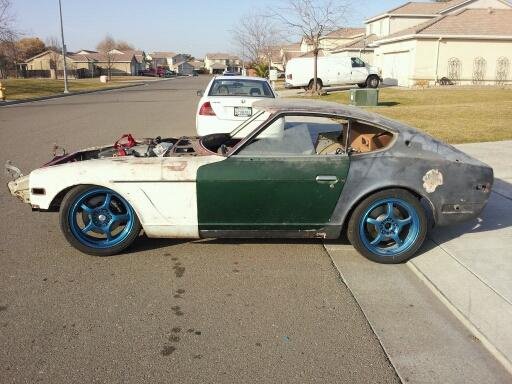 @ Sypherslayer.....yeah me too, i cant wait to get it rolling around town. If your in the stockton area, we should hang out and represent our Z cars. I also might need some nuts and bolts here and there for my 240z, maybe you might have some lying around i can buy off of you. Anyhow, all I have left to do to get it road worthy is to get the cars bodywork done and in primer at least so I can get the windshield installed and I'll worry about the paint later. Also Im gonna need to mount another seat and buy some wheels for it. I ended up selling my rays engineering gramlights.