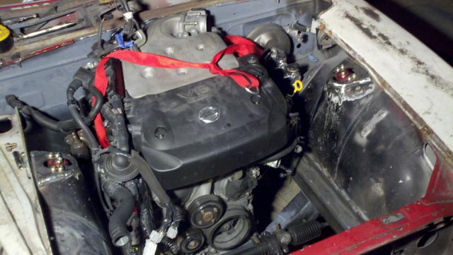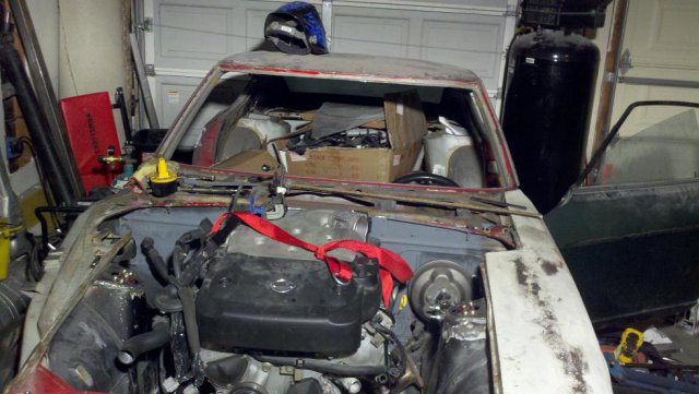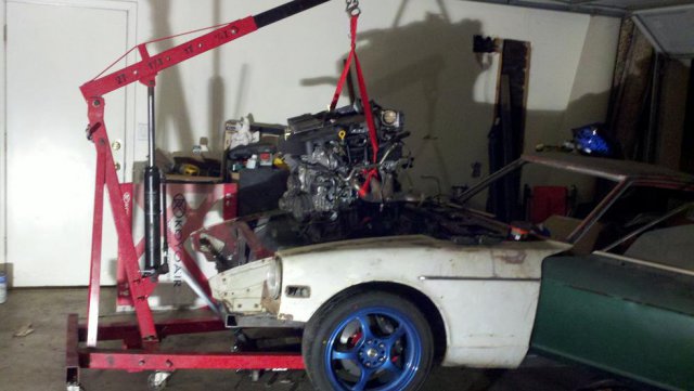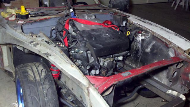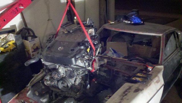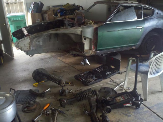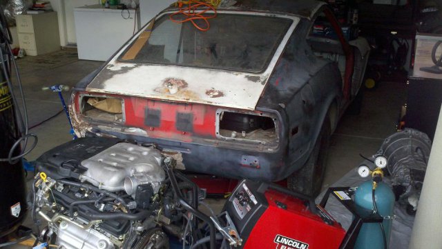 so like the title says, should i finish my project or sell it and just think of it fondly from time to time....Well, it all started with a 1973 240z that I got from a guy out near vallejo, ca. The car had no engine, no doors, no rear hatch, no hood, no fenders, no roof skin, and no wiring, pretty much just bare shell and busted up suspension and 4 flat tires. I was sooo in love with the shape and classic roadster style that I trailered it home. When I got home I decided to take a closer look and i realized that it had quite a bit of rust in the typical areas (battery tray and floor pans). So good thing I had a welder and time to make all the necessary rust repairs. I replace the floor pans, then added thicker floor rails that extended all the way to the rear frame, cut out the old rusty engine rails and made new engine rails out of 1/8in walled square tubing and let it sit for a while. Then I stumbled on this hybridz.org site and my life changed. The most of my new obsession was from drooling over Austins vq powered 240z. Thats when i decided to start that same project and bought a vq35de motor out of a 2003 350z 6speed. Shortly after I started stock piling parts like they were gonna run out or something. So heres a list of parts I have right now for the swap: Mckinney motorsports motor mounts $720 shipped and tax included, TTT (techno toy tuning)Backing Plates $550, Moustache bar $250, Lower control Drop mounts with dogbone $300, Front Diff Mount $150, Chromoly Axles $480, Coilovers for rear strut casings $199, Shocks for rear strut casings $240, front roll center adjusters $80,adjustable t/c rods $200,front lower control arms $350, rear lower control arms $425, front Arizona Z car coilover suspension with weld in camber plates, Arizona Z car Big brake kit with wilwood calipers, steel braided lines, 5 lug rotor and hub assembly, and caliper mounting plate, also have a 15/16 bore brake master cylinder with 280z remanufactured booster, and 350z steering column custom mounted to work with stock steering rack, I ordered austins shifter relocator and new b&m short shifter, brand new fidanza flywheel and exedy clutch, and mounted the 350z clutch master cylinder. I Also have a set of 17in Rays engineering Gram lights 57c that I have mounted with a brand new set of dunlop direzza star specs...................Anyhow, im pretty sure there is more that I forgot to mention as far as upgrades go, but lets just say a have a whole lotta money into this thing. The motor is in and lined up parallel to the rear diff about 2 or 3 degrees, which is a R230 by the way and engine mounts welded in and rolling pretty much. All I have to do now is plumb and flare the new stainless steel hard fuel lines, buy and mount a fuel cell/ fuel pump/fuel filter, plumb flare all of my new stainless steel hard brake line, get custom length driveshaft, hook up electronics and trouble shoot start up. Thats all thats left mechanically I need to do. As far as cosmetics Ive since welded in a roof skin i got off another z, I got a rear hatch, pair of doors with glass, quarter glass acquired, front windshield acquired, fenders, and hood hinge. the only thing missing is the hood and body work/paint of course. Ive finally run out of money and recently acquired a new baby boy. Did i mention i got laid off also, "isn't life grand." Anyhow, Im at a lost right now. Im so close to tasting and smelling the exhaust fumes and jizzing when I scratch 4th that its not even funny. But back to the question, should I finish and sell this thing or keep it for myself, or should I try to part it out? I know a few will be dying to get their hands on the r230 and custom moser engineering axles and mount setup I got... what do you guys think would bring in the most money for my family and newborn son? finish and sell, Part it out, or just keep and live really meagerly for a long while. Anyhow, any advice will do and is much appreciated since hybridz.org is my new family...Here are some build pics hope everyone enjoys.