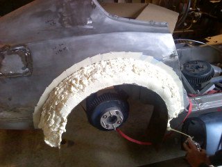 I used sheet metal as the base, then spray foam to get it into a rough shape, from there bondo for final sculpting and now im using it as a mold to lay fiberglass on and make the flares. The fronts were basically the same, the major difference is the fronts are a full fiberglass fender. -
