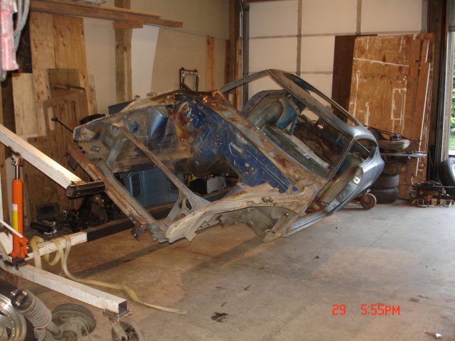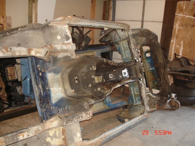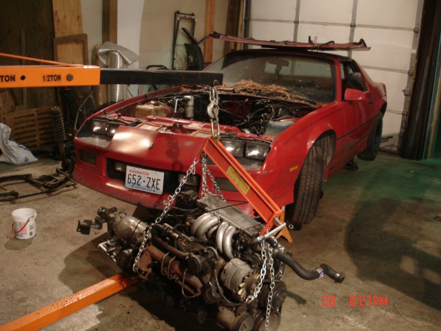 I havent posted anything for a few weeks. But a lot happened in the last couple days. 1) I purchased my brand new transmission. (t5) for now... cant afford a t56 yet 2) I got my car back from the sandblaster (Tons of rust and 500 Dollars later) 3) I pulled my motor out of my donor car (tpi 350) 4) I scored an entire floor piece rust free for 60 bucks! (my pans were wasted and it beats a few hundred for new.)