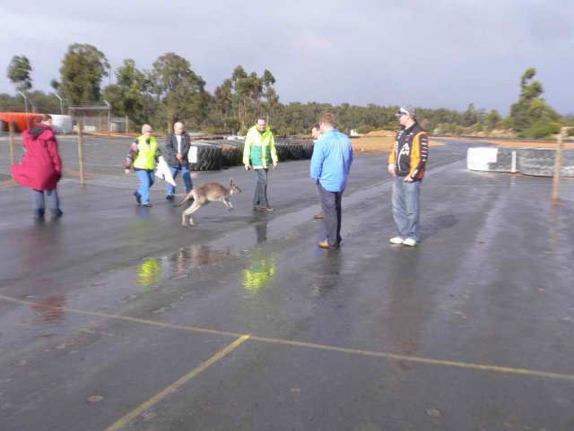 Here's a bit of Australia for you - we had lots of rain and surface hazards at the circuit yesterday, where I took the GTR for the first time (and my wife in her blue TT Quattro), but how often do you guys get a kangaroo in the pit lane and then hopping out onto the track. The next guy round on the circuit got a shock when the roo jumped out!!