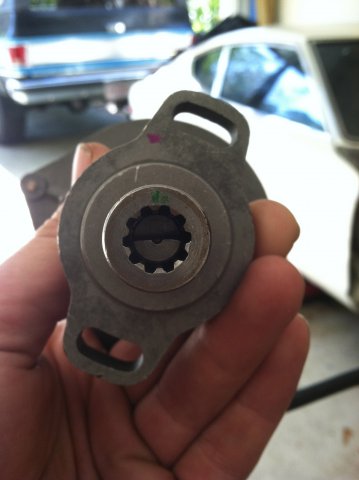 It's a centered male tab, and the distributor shaft has a female star housing with an off-set male tab.
