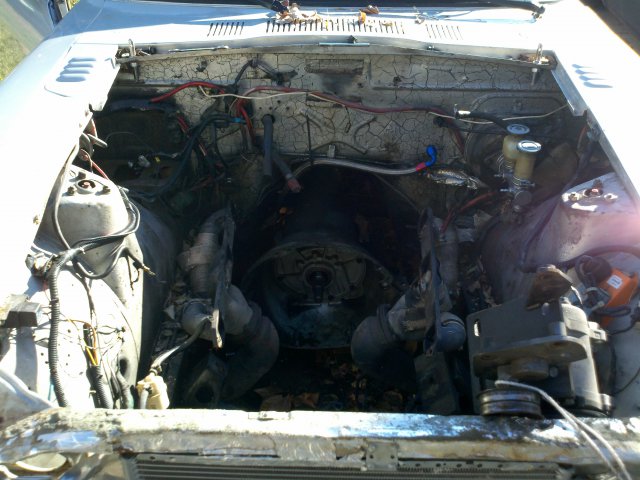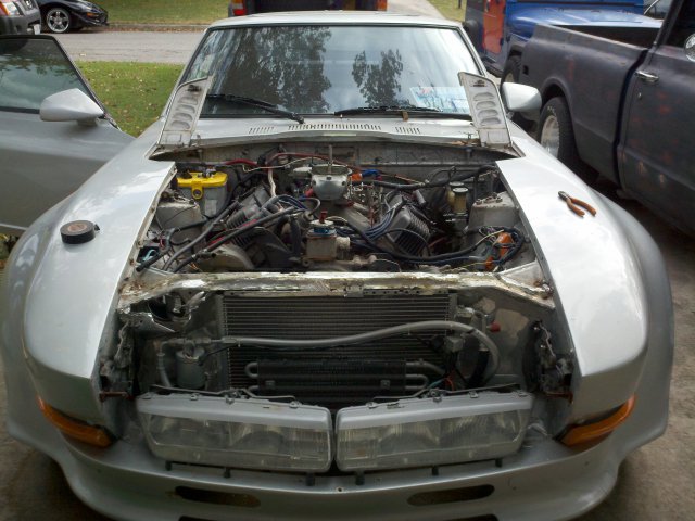 Ok so I started on the project today. A little history before I continue. I purchased this car as you see it. Ran good, cold A/C (yes) but it just wasnt my thing. I prefer a Chevrolet engine over any, so with that I created this transplant. The guy who had it before kept up with it but by the ducts tapes, wire looms and other things, it began to appear he was "patching" things up instead of actually repairing the issues. Like I said, frame wise this car is southwest with no rust, tunneled, tokico and strut/shock braced.