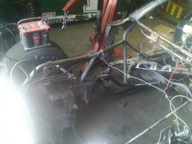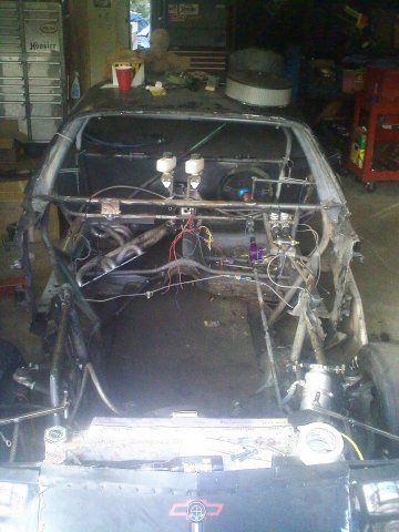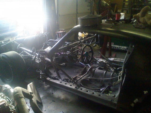 Not much of an update, we have decided to keep just the driverside floor for now so we won't have to build a new one. The entire passenger floor and firewall have been removed and we have decided on moving the motor back another 7.5 inches to give us 53% rear weight and we are going to offset the motor about half an inch to the right to offset the driver. We are also going to do a little more cage work as well as tin off the passenger side and make a lightweight firewall. Any suggestions as to what we should add on for chassis reinforcements are appreciated.