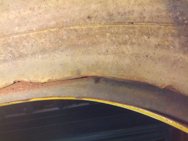 2. I don't have those pics right now but I can get them. The original color was yellow... this has been repainted. They used a reddish primer under the paint. I believe the left rear fender skin was replaced at some point; there is a cut inside the wheel well between the fender/wheel well that really needs to be connected for best structural integrity. I might have a pic of that; I'll try to find it. ETA: found it