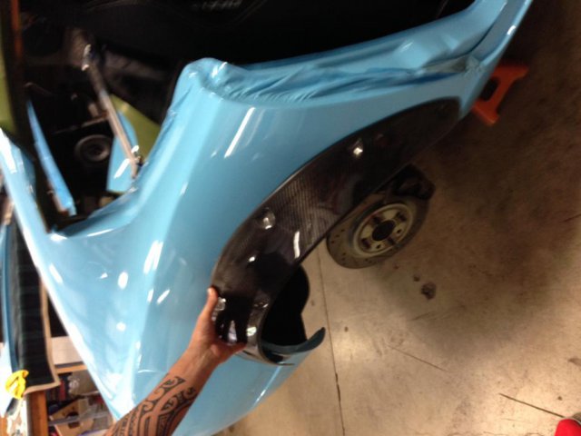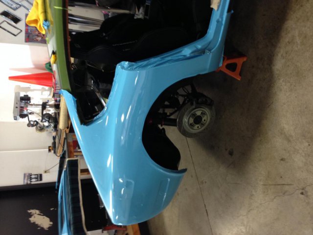 I decided to take my car a step further and bought some CCW wheels and wide ZG flares. I also decided on a new color scheme; Gulf Racing livery. Here are some pics of the progress.