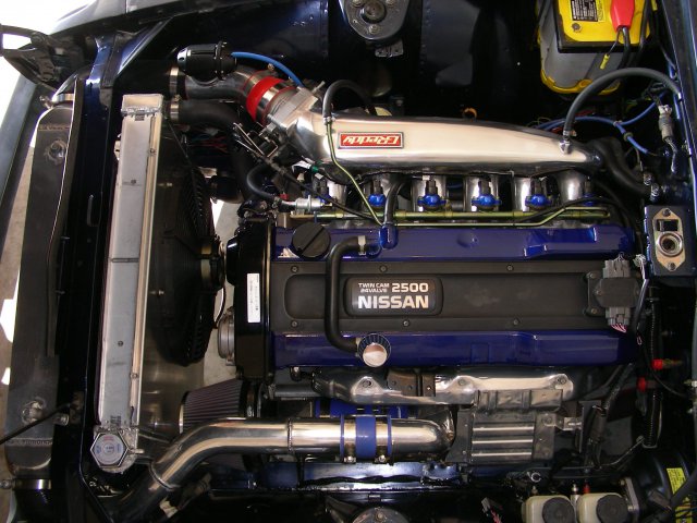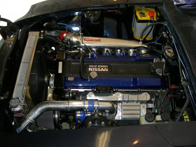 Bought the engine in '00, but finally got it done last month , just in time for the '08 Z-Convention. Sooo nice to get it back on the road. I've owned the car for almost 20 years, and put over 160k on it (the last 100k with the stock L series turbocharged). Right now it's a totally stock RB25DET except for the (real) Greddy intake, 4" thick chinabay intercooler, and bit of powdercoating and polishing. Ck out how clean the cams and the head are. This is a stock USED engine. I really lucked out on this one. A little more boost, and then it's time to start on the body. Don't know if I will have the time or $$ to finish the RB30DET by next summer, but I'm going to give it a try.