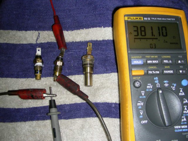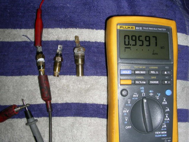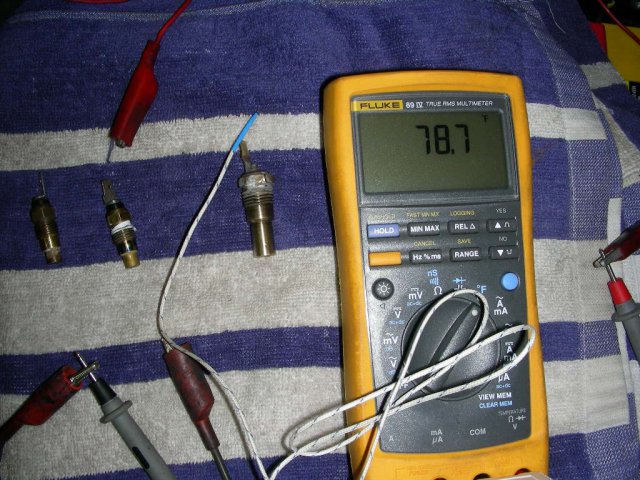 Sorry for the delay, but finally got the pic's downloaded - couldn't find my damn interface cable. I have a pretty decent Fluke multimeter, so I took some temp and resistance readings at ambient, and then heated them up what would be approx operating temp,. The first pic is at ambient temp 78.7 deg F. Second pic is the KA sensor, which was around 381 ohms. Third pic is the L28 which was 407 ohms, so a little split, but not bad. Except for working out the linearity, really not to concerned about the 'cold' readings being a little off. Fourth pic is the RB sensor, at about 0.9597K, so it was waay out there. Then we heated things up a bit. Fifth pic - Got a pot of water going on the stove, and let it stabilize for about 10 min at about 195 deg F. I wanted to get a reading on the hot side of operating temp, because that is where I want the most accuracy. Sixth pic - Keeping the probes out of the water, the KA sensor was pretty consistent around 30 ohms +- 1.5 ohms. Didn't have enough hands to hold the probes and take a pic, but the L28 sensor was about 31 +- 1.5 ohms. So I would say that it's close enough for me. I would eventually like to run it from ambient to around 240 deg, and record every 5 or 10 deg, just to see what the whole range would be, but that's for another time - too many other things I need to get done on the car. Had the car out at the 1/4 mile drag strip last week, and again, temp was dead stable, and never moved off of it's spot just below half scale. (FWIW I ran 13.4 at 105.8 with crappy tires and guessing when to shift - no working tach yet... at only 7 lbs of boost. Put the hurt on a supercharged Cobra mustang ). -