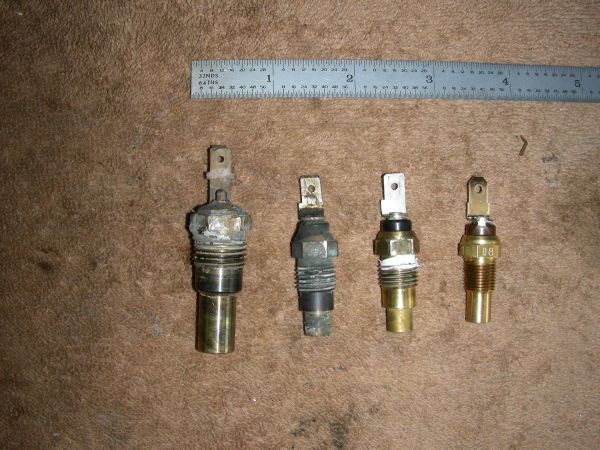 Just got my RB25 in and running a couple of weeks ago. Ran into the same thing with the temp sensor, but wanted a more elegant solution than adding an aftermarket temp gauge or inline sensor. I usually have multiple projects going on at once, and for the first time it worked to to be a benefit. Knowing that Nissan crosses over many parts, I scoured the garage for a similar sensor. By pure luck, it didn't take long - I had a '91 240SX KA24DE on an eng stand, and sure enough the sensor matched size and style. Taking a multi-meter to it, it had the same resistance at ambient temp and the orig Z sensor. Lacking time, I went ahead and tried it out. Just as I hoped, it read just left of center on the stock Z gauge with the eng at operating temp. It even ran midway right of center one time when I forgot to hook up the electric radiator fan. The toyota one from Chris R's install article (LOTS of good info there) was too small in diameter and wrong thread pitch. Hope this helps. In the pic below starting from the left: Stock '77 280Z, '91 KA24DE, stock RB25DET, Toyota one -