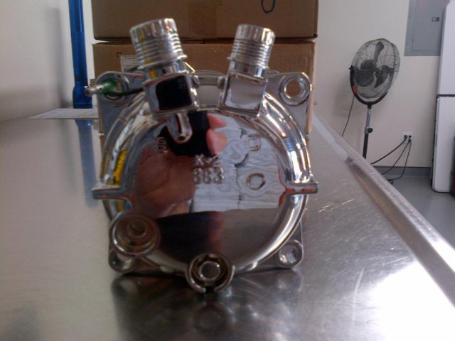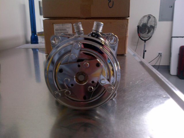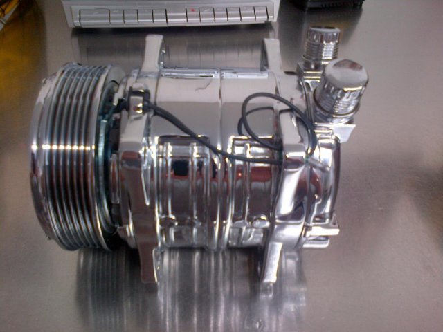 My JCI A/C compressor finally came in. I had sent it out to be chrome plated. It took a long time but worth the wait.