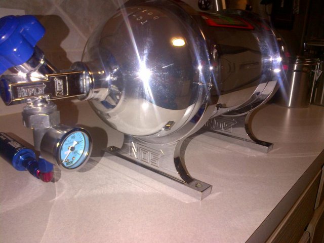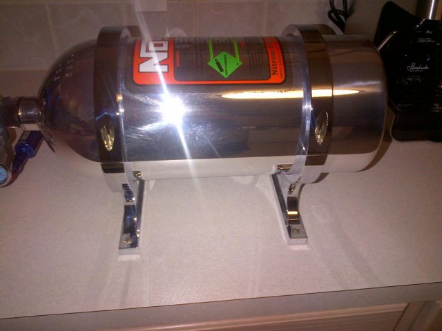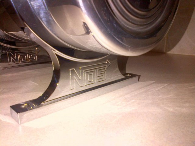 Not much progress but more chrome to put together. Just got my NOS billet brackets chrome plated and fitted on the bottle. Working on my direct port set up now, should have it done in the next couple of months I hope.