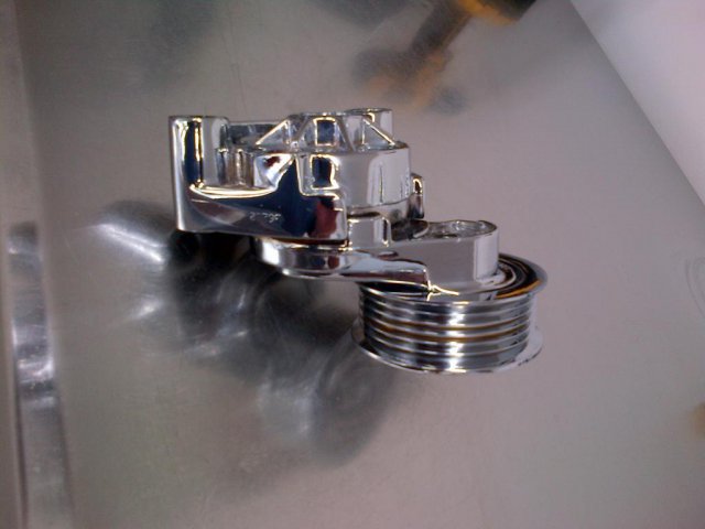 Not much progress but did get some more chrome. It’s funny how getting a chrome tensioner can be such a PITA. First I bought a new tensioner from GM then I had to purchase a billet aftermarket pulley since the GM factory part is plastic and chroming plastic is another PITA. Then I had it all chrome plated of course.