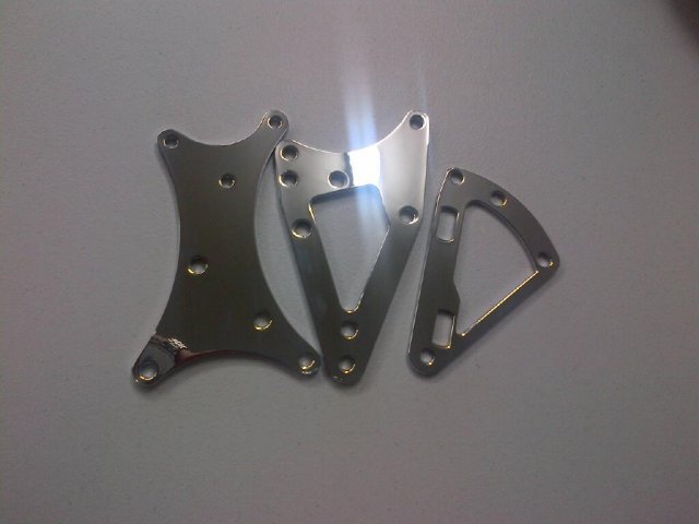 Frustration is now setting in, It seem like every time I order something it's on back order for 6 to 8 weeks. For now I had a local machine shop make me a front A/C compressor bracket. I did not like the JCI bracket I ordered since it has their name and phone number stamped on it. I don’t want my car to become an advertisement billboard for anyone. After I had the bracket made I had it and the other 2 chrome plated. Should look nice next to my chromed A/C compressor.