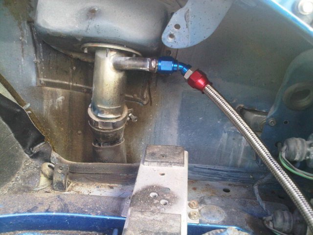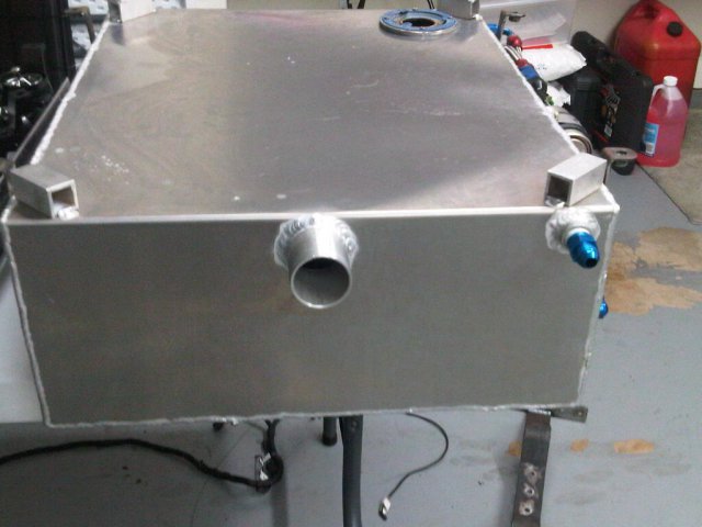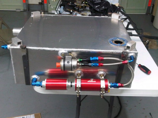 Today I took the car from the fab shop to the body shop. I removed the fuel sending unit and sent it in to be rebuilt. I have attached pictures of the tank on the car and out as requested. As you can see the tank design is simple but does all I need it to.