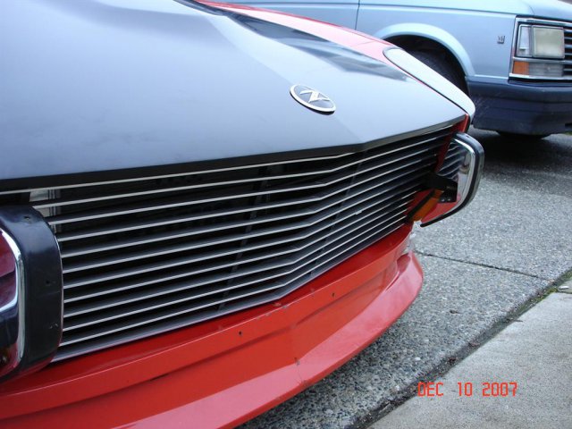 I like it, It's got that Mad Max thing going on. I too hated my stock grill and since I have a 2 peice bumper (got hit the first week I owned the car) I wanted a grill that filled the front end up. SOOOOO... After getting hit by a Mazda B2000 (some punk not paying attention, I figured I'd take his $800 and do something for the car. I bought a brand new Hood out of LA CA, and then I went to the Metal Supplier down the road. I bought $40 worth of Aluminum 1/8" X 3/4" slat. And an 8' peice of "C" channel, similar to the C-channel used in the stock grills. Here's what I came up with, hope you like it. Open for Opinions. Dave. -