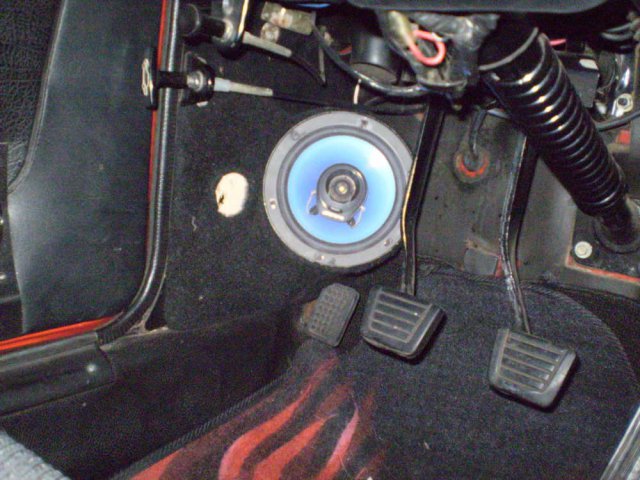 You've obviously never sat in a 240Z. Single Din Only. Period! A 2 din is called a Double din and it measures about 7" X 7" and there is NO way it'll fit in a 240Z. No adaptor cable or plug for a 1973 240z or any year 240Z. The cage needs to be centered and use a scribe or sharp instrument to outline the cage onto the radio area. cut it out using an air saw or small hack saw. BE CAREFUL because the plate can break and then your screwed. and nobody wants to go thru replacing the heater control/radio plate. 1) Use one of the 2 center console hold down bolts for your ground. 2) Yellow wire of the deck can be attached to the cigarette lighters power wire (Blue/white stripe) 3) the radios red wire will go to the blue ignition wire that normally powers the radio. 4) if the new radio has an orange illumination wire and you want the radio to dim when the lights are turned on, connect it to the red/blue dash light wire located near the blue ignition wire. 5) you'll need to trim some metal on the inside of the frame work where you cut the hole out for the radio. Occasionally, the metal needs a little trimming in order for the radio to fit snuggly. You will also need to run your own wires for the speakers. The two white wires are for the single speaker won't make the grade. Make sure you lock the cage of the radio properly so the radio does'nt flop around in the dash. You may need to file a bit to get the cage in there nicely. here's a couple pics for ya.... The first is of my wheel well enclosure with a 12" MTX sub. I also have power windows, power locks, XM Radio, front kick panel speaker pods, rear 5 1/4" speakers and 4" door speakers. -