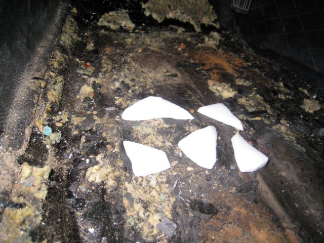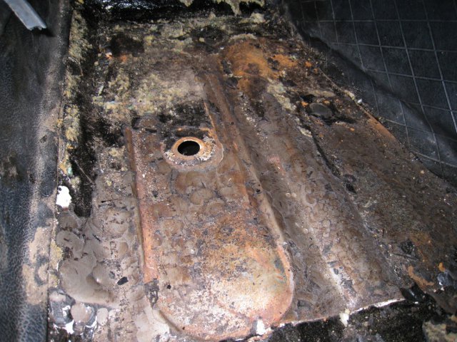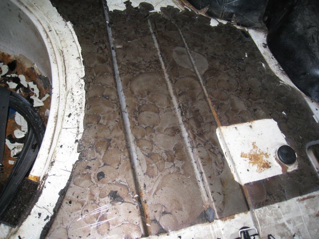 I picked up some dry Ice tonight, I started chipping away at the old sound deadner on the floor pans. Their doesn't seem to be much rust on the floor pans from inside the car, but im not done yet on the chipping away. The dry ice really worked well, i just should have used a bigger piece but it was late and I only wanted to try it. So the driver side is almost doe being chipped away just from tonight. I also took a pic of the center console, I really wanted to try and keep as much of the original leather as I could since you can't really get that stuff anymore. But I see rut coloring underneath so I think Its going to have to come off. Any suggestions on keeping it or getting rid of it? I was waiting on doing a leak down test for the motor till the middle of august to borrow a leak down tester, but it looks like I'll be getting that done hopefully this weekend, so then I could pull the motor our and start sanding and cleaning the motor area. Well here's some pics, gotta get going to be and be ready for work. Alex -