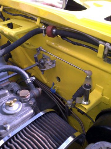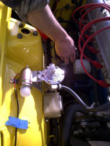 Some close-ups of the work done in the engine bay and the throttle linkage. I had a vintage fuel filter (Filter King) and we fabricated some simple things (for the spring and the trottle linkage). I selected the Filter King because I saw some vintage racing shots which showed the same filter. Also the bracket for the MSD is custom. Running the MSD 6AL and the Pertronix. Not sure if we'll keep that pressure regulator, will likely get a Holley or Aeromotive and think about another location for it.