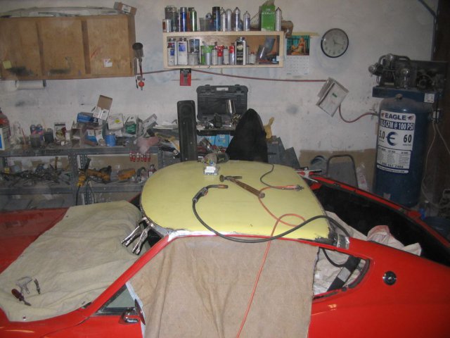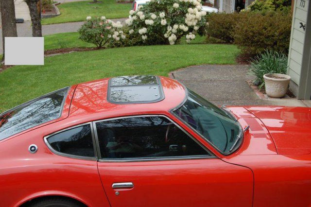 Hi, guys. I don't post much here, but do visit for research now and again. I'm much more active on CZCC.com since my Z is mostly stock. But I thought I'd share this here as well, since I did some reading here on this subject prior to having this done. I just got my '71 back yesterday after having the roof reskinned to eliminate the sunroof. Here are some before and after pictures. I don't have pictures of the process itself just yet, we couldn't get his camera to download to my laptop (bad USB cable, I think), so I'll have to wait for him to e-mail them to me before I can post them. Soon, I hope. The guidecoat on the primer makes the roof look a bit wavy in the pictures. Trust me, it's not. The work was done at Evolution Auto Body, a one-man shop (Scott Daniels) in Salem, OR, basically next door to ZTherapy. I don't know how many S30 roofs he has re-skinned, but I do know that mine was not his first, probably more like his fifth or sixth. I could tell the first time we talked that he knew exactly what he was doing. And he is incredibly affordable. I supplied the donor roof, and the total was all of $450! He invoiced me 14 hours at $30/hr. That included a couple hours to do a touch of rust repair under the windshield seal on the donor roof. I dropped the car off Monday afternoon, and picked it up late Friday, so four days. I can't recommend him enough for this type of work. The job was fairly straightforward. Drill out all the spot welds on the donor panel to remove it intact, cut the bad roof off the car and grind down (not drill) the spot welds on the car, and re-weld the new panel into place. I'm certain that any competent sheet metal guy could do it, but I'm glad I picked one who has done it on these cars before. Scott also cleaned and applied a nice glossy epoxy to the underside before he welded it on as part of the job. Perhaps it's not a stiffener, but it sure seems like it might be. On the trip back home (60 miles) the car seemed much quieter, even without any headliner. Now that the car is back home, I'm going to strip it the rest of the way down and deliver it to my local paint shop week after next. I would have let Scott do the whole re-paint, but he said he is so busy that he's not taking in any full repaints right now. But he said squeezing in a roof skin job was no problem. So I'll have the rest of the paint done locally.