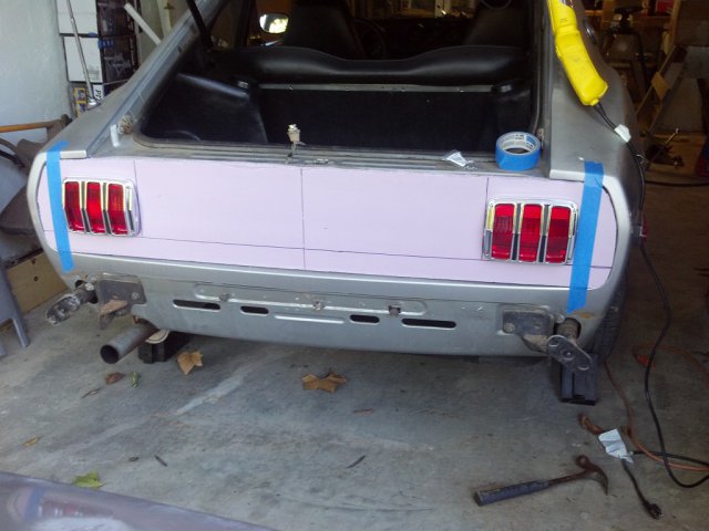 I measured center and spaced the Mustang tail lights properly and then test fit the Mustang parts in place: