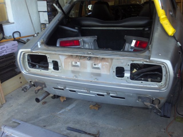 I installed 1965 Mustang Tail Lights onto my daughter's 76 280Z. I removed the stock tail lights, surrounds, and license plate holder first: