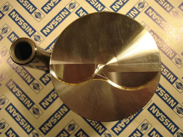 The valve relief placement does look different. Maybe its just the different depths that create an illusion. The only way to tell if they are in the right location is a simple test. drop a little clay in there and rotate it over to see how much clr. and edge relief you have. I have milled many reliefs in pistons, and set up the valve centerline by a light center punch mark on the piston. When pre-assembling your eng., run the piston up to 10 degrees before TDC. then set the bare head on the block. Take an old valve, and cut the head off, and machine a center point on the remains of the stem. Then just drop it into the guide and lightly tap it. This will leave a mark on the piston at the exact center of the valve at the closest point the valve will come to the piston, usually between 8 and 12 degrees before or after TDC. Also, JE does offer (for a price) a service called 3D lightening. Where they machine the underside of the piston to match the dome, leaving a constant dome thickness. For more comparison, this pic is a set I have that was made with the same forging as Yassin and John's. Its a flattop with deep reliefs for a bigger cam. Phred