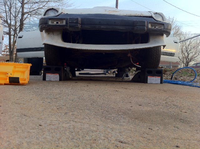 It has been a very busy weekend over here! made up my ghetto cardboard mold, worked pretty well. oh yeah!! my car runs now! apparently i failed to notice that the PO had somewhere along the line got the dist. off 180 degrees. switched the plug wires accordingly and fired right up! Its running a little rich but thats a lot better than not running at all!!! Im sure the timing is pretty off, and its running pretty rich. New sensors are on the way and the bumper is almost finished up. i need to repatch one of the blinker holes, some how managed to grind a whole through the fiberglass.