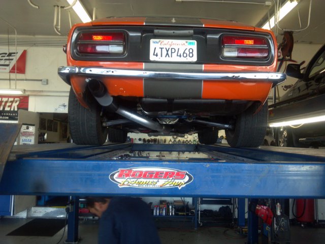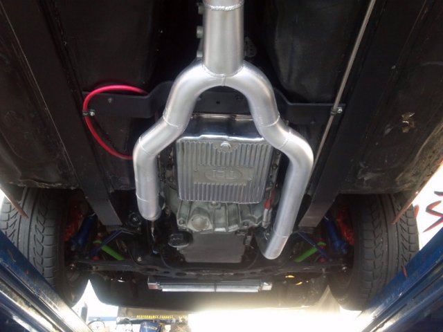 When I completed my build back in July 2011, my neighbor across the street recommended an exhaust shop relatively close by. My neighbor has had numerous street rods, primarily original '30s, and this shop was (supposedly) frequented by hot rodders. However, over the course of the past year, I noticed numerous issues with their work ranging from incomplete welds around pipes that allowed air intrusion before the O2 sensors, hangers breaking and leaving holes in the pipe, rigid hangers that transmitted all vibrations to the cabin, numerous transistions with crushed bent pieces, clearance issues with low hanging exhaust, and to top it all off, a Flowmaster CLONE was installed instead of a true Flowmaster. Many of my performance and tuning issues were due to this rather crappy exhaust system. I just had a new system installed by Roger's Exhaust in Fontana, California. I originally wanted Roger's to do my first install, but the towing charge would have been around $200. My neighbor offered to tow my car in his enclosed trailer to the shop close by and at the time the shop close by made sense. Lesson learned. Roger's Exhaust is talked about highly on LS1tech.com and they seem to have a lot of postive reviews. I spent the entire day at their shop. They were forthright with their pricing and Roger's brother Sparky did the entire fabrication. His welds are fantastic and he has a lot of pride in his work. They managed to tuck the exhaust up another 0.75 to 1-in. using all mandrel bent pieces, added a nice spiral flow resonator (which was DEFINITELY needed - the drone at 1700 rpm rattled my brain), built a custom Y-pipe, and topped it off with a Flowmaster muffler. Below are the pictures and link to a sound clip. For those of you in So. Cal. looking for a shop that does nice exhaust work, check out Roger's Exhaust in Fontana.