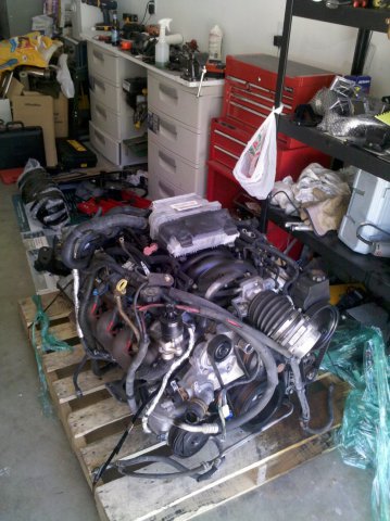 Tony, you told me about office location a while ago. I moved from south Orange County (Foothill Ranch) to Diamond Bar in April 2010. I opted for HP Tuners which is similar to Tunercat but has a more polished user interface. I can use HP Tuners to tune the car as well (fuel, spark, disable sensors - O2, VATs, EGR - ect.), read codes, and tune the 4L60E (i.e., shift points, min/max line pressure, etc.). It only makes sense to buy HPTuners (or another program) instead of sending the PCM in everytime you want to make a change. I just need to wire up an OBDII port which is easy - 4 wires and a connector. I have these parts coming in as well. I spent a couple hours last night removing the exhaust manifolds, A/C compressor, and cleaning the engine up. I picked up an LS6 intake as well and am dropping off a few parts for powder coating later today. -
