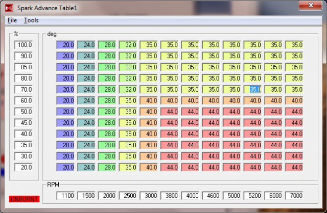 I wouldn't worry too much about the shape of the advance curve below 3k. Similar to what cygnusx1 said, I'd be all in with the advance by 3.5k. When I ran NA I was able to go as far as 35 degrees total advance, and although I don't remember where I read it, that seems to be the generally accepted max advance for our NA engines. I never dyno tuned, but I've read others say that after 30 - 35 advance there is no more power to be gained. Of course, this all assumes that you can run that much without detonation. Above you said you can run 87 octane, but you didn't say at what advance. In any event, with a stock cam you can run between 12 and 20 degrees of advance at idle. I found that with a larger cam it liked more advance, and the closer to stock with the cam profile the less advance I needed. Here's the last advance curve I ran with my NA (flat top pistons, shaved P90, moderate cam, megasquirt, etc.).