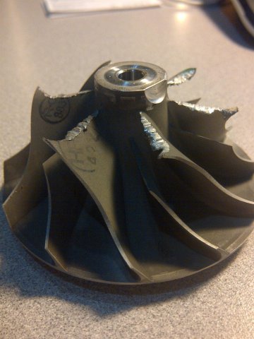 I ordered a new compressor wheel and rebuild kit from G-Pop Shop. After I rebuild it I plan to send it back to them for balancing. I can't find a single shop in Colorado that balances turbos. Is it a rather specialized skill, or perhaps the market for it isn't that large? And Tony D, this wheel was only a little over $100. I imagine that one is precious.