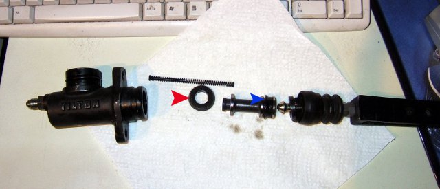 Anyway, as I gently extracted the piston I noticed that the rubber seal ( arrowed in red) remained inside the cylinder and had to be shaken out.