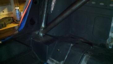 I agree with all the statements above about the cage, not about triangulating a main hoop with downlegs though. Although if its just for show I wouldn't particularly worry about changing the design now. My main hoop was built on 74_5.0l's spec sheet and was so tight to the rockers that I had to hook a ratchet strap to the ends of the legs and squeeze them into the car. Removing the tension on the strap once it was in place allowed the hoop to 'spring' up against the rockers...thats how tight it needs to be for safety concerns. The more important matter of the fuel cell though, yes you most definitely need to change the mounting! No way will those 'locating' tabs be enough to support the weight of a fully fueled cell...and then drive around town an hit bumps! Personally I built mine out of a 1"x1" square tube full cage with four down legs, welded the nuts inside the legs and made a fully supporting cage for the bottom of the cell to bolt up into the down legs. Ill try to get some better pics for you when I'm free to do so but heres some pics to give you somewhat of an idea of what I'm talking about.