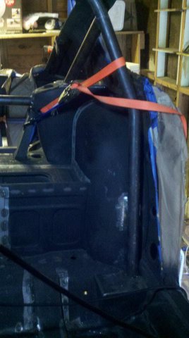 I did what 74_5.0L did and only tacked my cage in place while I measured and cut all the additional supports to the rear main down braces. I 'should' have left a little more room on one of my braces for it to be easier to weld up but hindsight is always 20/20 right. Regardless, it now has a bead all the way around, just not as pretty as the TIG welding on all the other joints. I just made the whole rear half of the cage, tacked into place and rolled it out when I was ready to weld all the joints. Fit like a glove. The shop that did the tig welding for me asked where I wanted the main hoop placed in relation to the map light bar and as they were rolling it back in place they said " well dang this thing just kinda locates itself doesn't it, is that where you want it?" I took a quick look inside and it was exactly the same place where I tacked everything up at!!! I said sure is, weld away