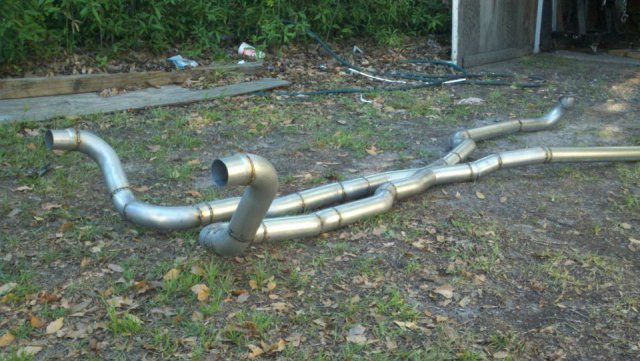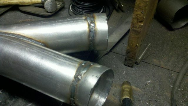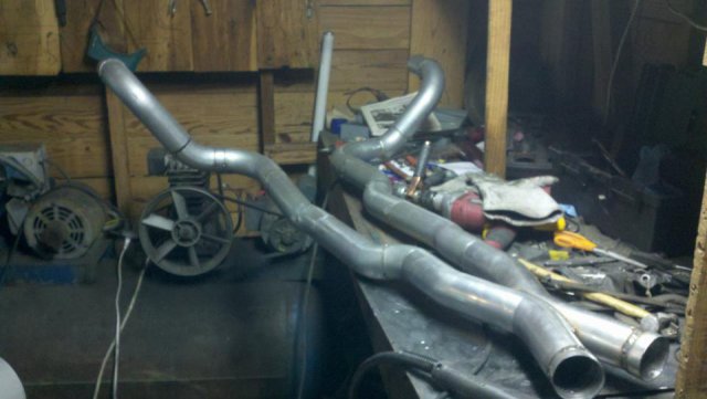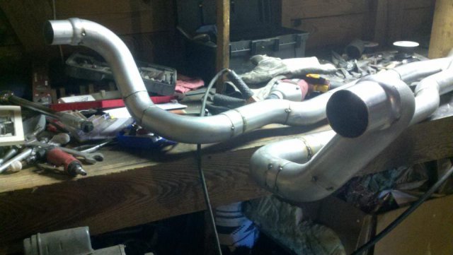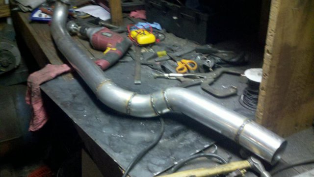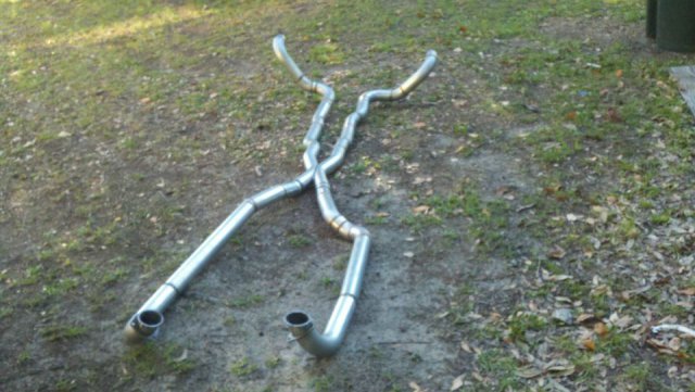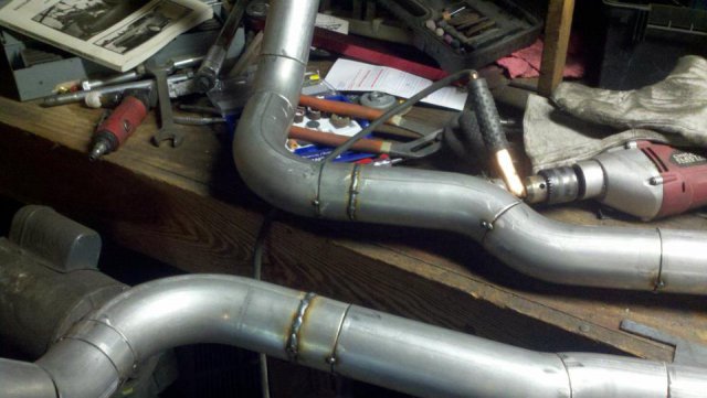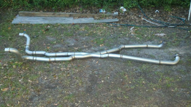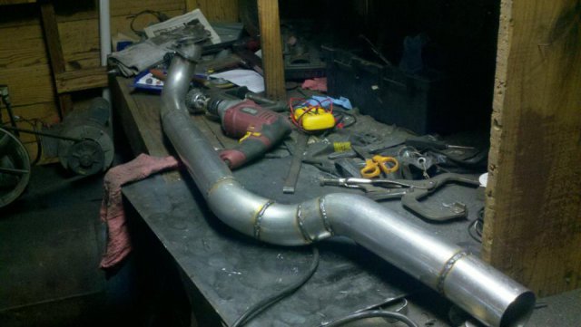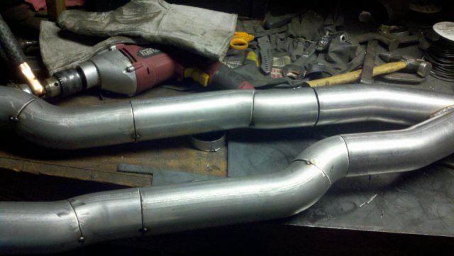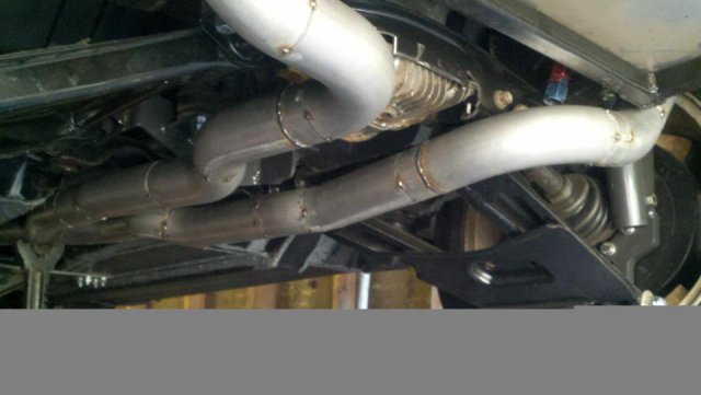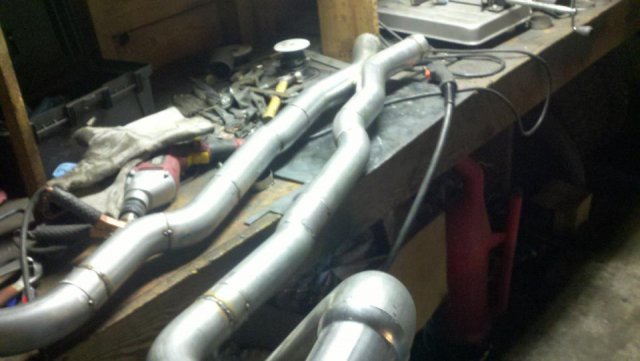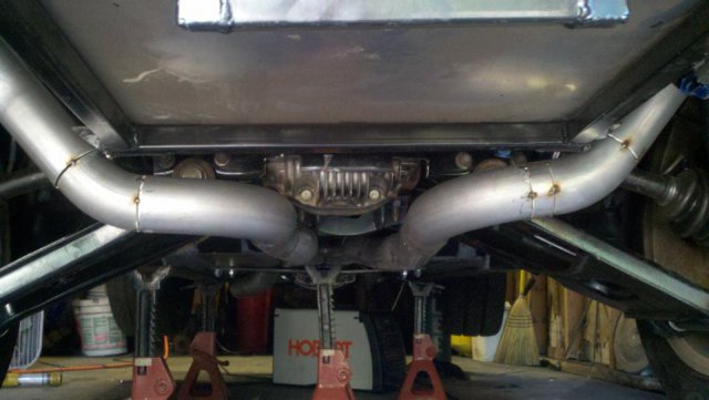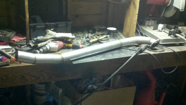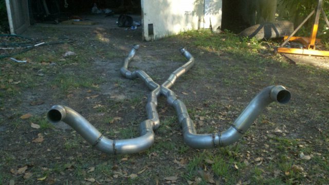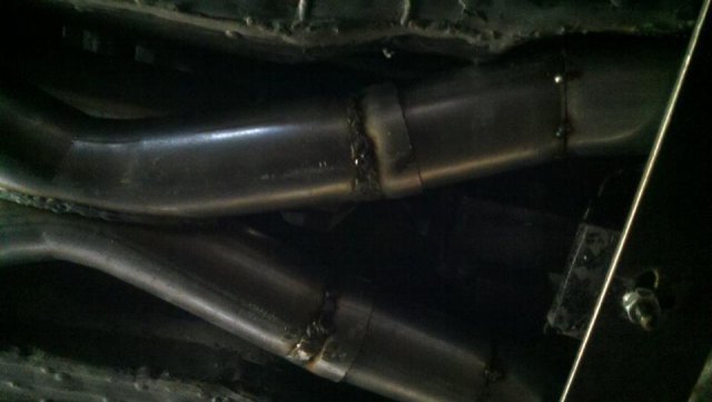 I haven't done an update in a while so heres my condolences annnnnd pictures I've done a lot more than im posting tonight but heres to getting my updates going again. I welded the whole joint on the cage as per recommendations...looks like snot but its a solid weld, Im adding some pics of the car on the ground finally. Rear is way high and will be lowered but here ya go. And heres some of my exhaust pics. I got bored toying with the idea of having someone build my exhaust and the added cost, and what the heck I built my roll cage so why not try something as trivial as some exhaust tubing So I made another journey to Summing Racing...If your are unfortunate enough as I am to live with in driving distance of one of these stores go ahead and send your apologies to the bank account... I picked up the universal 2.5" mandrel bent tubing kit, a Narrow X-pipe, some collectors, hangers and clamps. I took my time placing everything up and started from the header flange and worked my way back little by little. I'm usually anal retentive about measuring 10 times and cutting once but I'm ready to drive this things already! I measured one...count it, yes one cut, and eyeballed the rest of em. I deburred all my cuts inside and out and made sure to have no blow through or mig whiskers in the tube after welding. I tacked everything in place before I pulled the whole system out for final welding. I started off by cutting the flange off of the collector kit and welding it straight onto a peice of mandrel bend, Otherwise with the JTR headers it would have put the pipe too close to the oil pan. After that went into some 90 degree bends pointed toward the rear. A few very small bends were cut to point the straight pipe back. I wanted to keep good access to the oil filter and slave cylinder as well as keep the passengers side away from the starter as far as possible, but in doing so I may have sacrificed about 1/8"-1/4" ish ground clearance. I snaked both sides up above the transmission crossmember. 2.5" is TIGHT in the trans trunnel with a t-56 and straight x-member. I added some shortened slip joints to the x-pipe and slipped it onto the pipe coming over the trans tunnel. After that I just added bends as needed to keep the pipe as hight and tight as possible all the way to the rear where have them mounted to some 2.25" summit mufflers (dont hate, they were on sale for $10 bucks a pop, too good to pass up simply to get it quiet enought to drive down the road). I added some angled tips made from 2.5" pipe but don't have any pics of those just yet. All in all im pretty happy with the way it turned out considering this is my first attempt at any of this stuff. I may need to re-work the front based on how much ground clearance I have when its on the ground but time will tell. It sounds much better than it did in my old truck! My old truck had 2.5" with long tube headers, an h-pipe and glasspacks with LOTS of dreaded drone! This system has a very airy sound to it with lots of tone in the rpm ranges. Not too mbad for some on sale summit mufflers Let me know what you guys think.