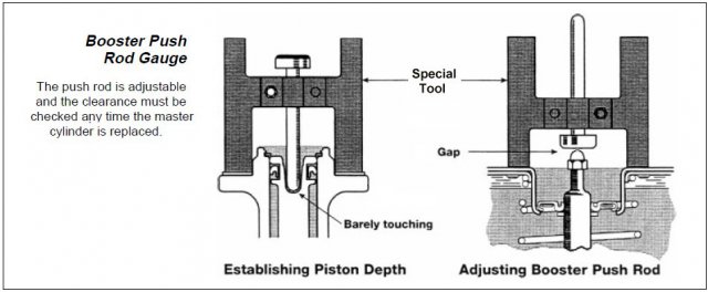 1. Set all of the mechanical brake adjustments, including the push rod, correctly. See push rod length adjustment above. You can do fine adjustment to the rod after the car is safe to put on the road without removing the MC. 2. Bench bleed the MC. Take your time and get all of the fine bubbles out. Make sure none of the fittings or plastic lines are sucking air. Transfer the MC to the car with the outlets plugged. Attach MC to brake lines loosely and then to the booster. Tighten the brake line fittings after the MC is attached to the booster. 3. Bleed brakes with a helper or use speed bleeders (check-valve style) or use a Motiv pump bleeder (what I use). The pump bleeder works well, but can be messy. On some calipers you have to remove the caliper, block the pistons, and shake/rotate the caliper while bleeding to get the air out. Be sure to block the pistons. If you don't block the pistons you will be very sad. -