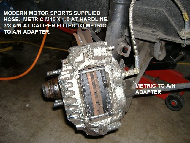 You will need to measure your brake line length for each wheel. The original MM kit came with two SS hoses. A short one for the passenger side and a long one for the driver's side. All of the brake fittings on your Z are M10 x 1.0 inverted flare, including hoses with the banjo fittings. On the rear calipers you can use banjo fittings or A/N adapters at each end and generic SS A/N brake hose. Study up on A/N brake lines before you buy anything. A/N hoses come with a variety of hose ends straight, 45 deg angle or 90 deg angle etc. You have to decide which is best for your application based on minimizing stress on the hose. Check out Summit Racing for hoses. Also, Silvermine and Chequered Flag may sell the hoses for the MM kits. So you have two ways to go on brake hoses: Prefab with correct metric hose ends that work with your brake modifications or: Generic A/N hose and you pick out the metric hose ends and adapters to make it work.