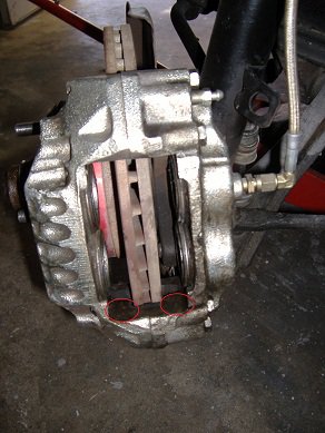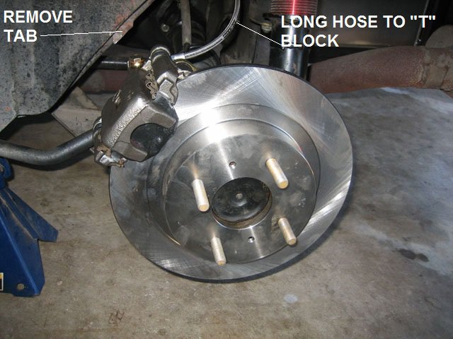 AXXIS/PBR ceramic brake pads: Toyota Front 45-01370U/4: http://www.importrp.com/product.php?productid=338850&cat=&page=1 240SX Rear 45- 02300U/4: http://www.importrp.com/product.php?productid=338820&cat=&page=1 Some parts stores may have them as well. The AXXIS pads are good street pads, but I am now going with more aggressive Carbotech AX6 brake pads : Toyota Front: CT137 AX6 PAD Material 240SX Rear: CT272 AX6 PAD Material I used generic A/N. SS brake hose to go from the hard line to the caliper. Each caliper has a A/N to M10 x 1.0 SS hose adapter threaded into the caliper. I did this so I could go to my local speed shop and purchase SS brake lines off the rack for future brake modifications. Just be sure to measure the length of each hose with the suspension at full droop and move the suspension to check for binding/rubbing of the brake lines. The 240Z brake fittings are M10 x 1.0. For the front do not use brake hoses with banjo connectors on the Toyota calipers. The Toyota S12 + 8 caliper is not machined or designed for banjo connectors and they will leak. You can use brake lines with banjo connectors on the 240SX calipers as they are designed and machined for banjo connectors. Use a fresh crush washer under the banjo fitting each time you remove the hose from the caliper. Parts stores have them. With the Modern Motor Sports kit, a longer driver's side brake hose was used from a hard line you supplied connected to the the T block and then the long hose to the caliper. The ready made hard line (parts store) was supplied by the customer from the T block was approx 20" (measure). See picture and links. I didn't like the long hose so I installed a new custom driver side hard line from the T block to the frame so a shorter 14" hose would drop down from the frame above the caliper to clear the axle and the tab. Don't cut/remove anything until you have worked out a plan that you know will work. http://www.typeischeap.com/pics/images/rearbrake.jpg http://www.zhome.com/ZCMnL/tech/Calipers/zbrakeupgrade.htm Do you have the parking brake cable brackets (hangers) for the 240SX calipers? You do not have to turn down the rotors. Use 84 300ZX non turbo rotors.