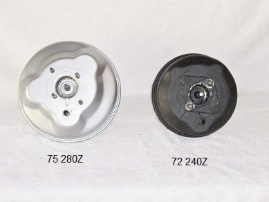 Wilwood p/n: 260 -8794 Available at Summit WIL-260-8794 The 280ZX master cylinder is now extinct. Here is what other HybridZ members have done: I just completed the Wilwood master cylinder and 280Z booster swap. Works well with my Modern Motorsports Toyota vented front and 240SX rear disk brake set up. Much better than my old stock 240Z booster and 280ZX master cylinder. The mounting holes in the Wilwood mounting flange have to be filed to match the slightly wider Datsun bolt pattern. I used a dremmel with a rotary file to open the top and bottom holes. No need to make or buy new brake pipes or adaptor fittings. The Wilwood master cylinder outlet ports are 3/8 - 24. To mate the Datsun 10mm x 1.0 brake fittings to the Wilwood MC all you have to do is swap out the outlet fittings on the Wilwood MC with outlet fittings from your Z master cylinder. The fittings are the outlet ports that thread into the MC body. The Wilwood and Z outlet fittings are identical except that one is 3/8 - 24 and the other is 10mm x 1.0. The Wilwood rear outlet port marked R has a residual pressure valve intended for rear drum brakes. If you have rear disk brakes you don't want that residual valve (looks like a rubber plug with a spring under it). Just lift the cone shaped part out of the rear oulet and remove the rubber plug and spring and replace the cone shaped part. Then screw in the fitting from your Z. The front outlet does not have the residual valve. I confirmed removal of the residual valve with a Wilwood engineer. I used a 75 280Z booster because I knew that the clevis pin matched the 72 240Z clevis pin. So no mods there. The bolt patterns are different so you need to make a templet of the 280Z bolt pattern and drill new holes in the fire wall. The booster was a tight fit btween the throttle bracket and the 7/8 Tilton clutch MC I am using. I had to dimple the outer edge of the booster about a 1/4 inch where it touches theTilton 7/8 clutch MC. The booster would fit easily if a stock 240Z clutch MC were in place. BTW the first Wilwood MC I bought leaked internally. It happens. -