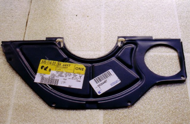 On my first 240Z build in 2001 I was able to buy the dust shield from a GM dealership. For my second build in 2009 GM told me that the part was NLA. So I searched wrecking yards for about a month, couldn't find one, and finally just cut one out of sheet aluminum. -