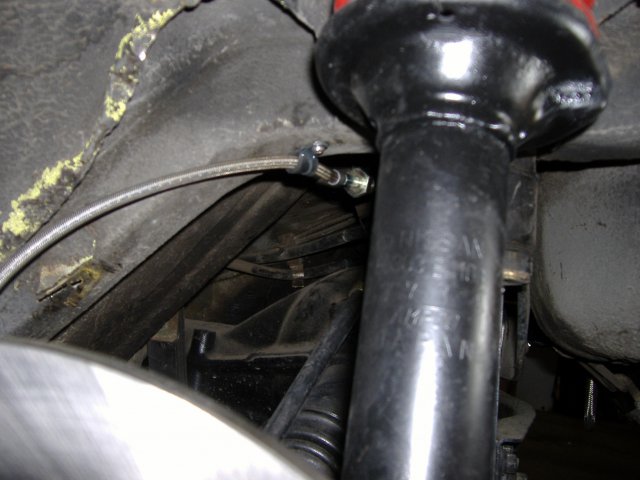 I haven't hooked up the cables yet, but they do look about 1/4" short. I could make a slightly longer adaptor if the caliper becomes too preloaded. I am running into a lot of little problems I didn't expect such as the driver's side flex line looks like it will rub on the frame (see picture). Also, my cam arm where the e-brake connects is just a hook (see picture). I have an old set of 240SX calipers that has the correct cam arm that I plan on swapping the cam arm to my new calipers (see picture). Miles -