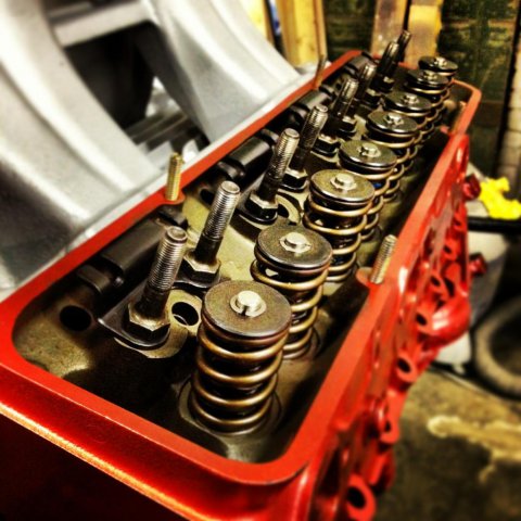 Valve train photo, part numbers if anyone is interested. 73925-16 Springs 75794-16 Retainers 77048-16 Locks 78518-16 Seals 86731-16 Locators #73925 Dual Valve Spring 1.306" O.D. 0.676" I.D. 153 lbs. @ 1.810" Seat Load 400 lbs. @ 1.150" Open Load 0.660" Maximum Valve Lift Pushrod guides are 5/16 raised made by allstar performance. They are 18$ on summit.