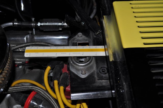 Miles, the pictures you provided look exactly like my setup. It did have to be moved to make clearance for the distributor. it's present position is 2 1/2 inches from the firewall. I'll try moving it another 1/8", but I am not too hopeful. Answers to questions and statements above: there is clearance between hood and air cleaner--not much, but there is clearance. also, when the hood is closed, the latch mechanism does pull the hood back into the correct position, but it a extremely difficult to open again. the long term reliability isn't an issue since this car will never be driven more than a couple of thousand miles a year.