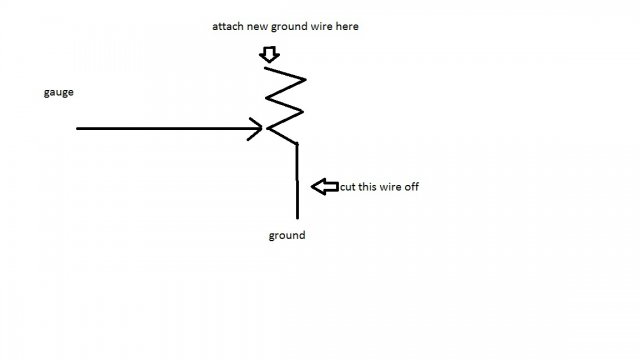 I meant that now the gauge is connected to the variable arm of sender resistor and the ground is connected to 1 end of resistor. If a wire was attached to the other end, it should read correctly.