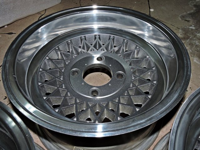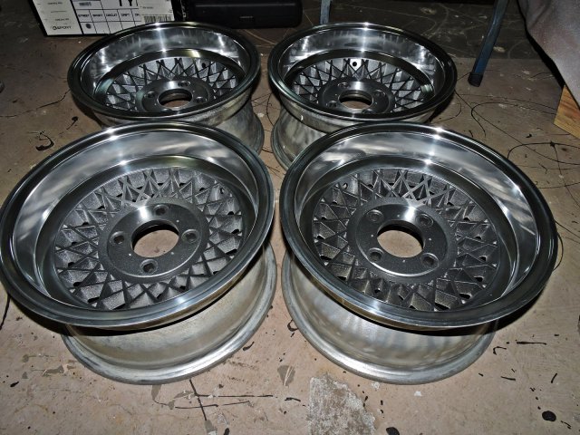 Freshly refinished 14x7 Appliance Wheels, +8mm offset.