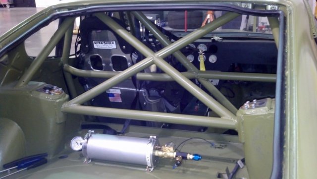 So much left to do. Gotta finish setting ride height and then mount flares and race tires / wheels. FOR SURE the fenders are cut high enough now LOL after finally pulling springs and doing it the right way on the 3rd go. Nets are in, seat and belts good, brace done, Accusump mounted, got to finish wiring and plumbing.. I consternated for weeks about where to put it and finally just drilled a hole and it was easy from there. Oil Line will go dong through the floor, over diffy, under tunnel into engine area.