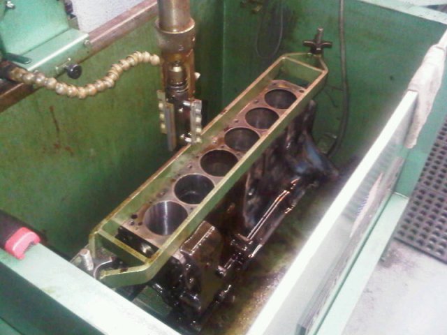 I try to work all day before walking next door with parts to play engine-shop. I made it till 5pm today then wheeled the F54 next door and setup the hone-tank. WE have about .020 to remove and many thanks to Mike at SF2 racing for letting me take out the first .010. Under close security I didn't fkcu up anything too bad. Measuring: Honing: Mike offered: Hey how about you let me finish these up now that they are close... Ya, that's a good idea. Thanks ET. All that honing made me beer thirsty.