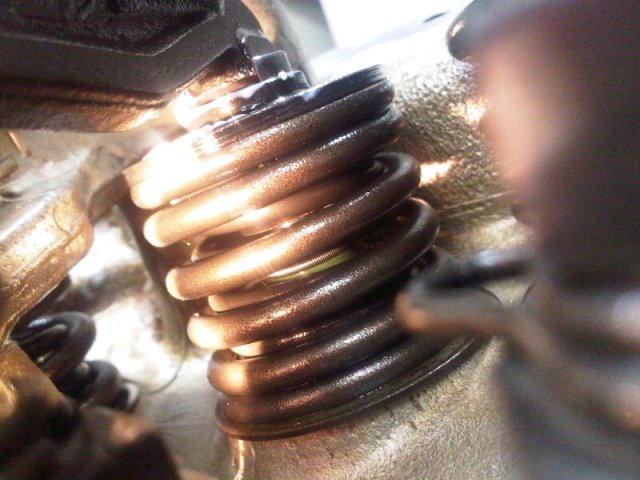 Head mating Block porn: The plug was in the cam, false alarm on that. Thanks to **** (short for Richard~?) from Chaos for the cheater tip on setting up the last pads. Using his method it took me about 12 minutes to determine that every cylinder needs a 160 lash pad except for 2 that need a 150. Ran some wipe tests with pretty decent results I think?? Good pic of the max compression showing the coil and seal clearance.