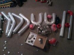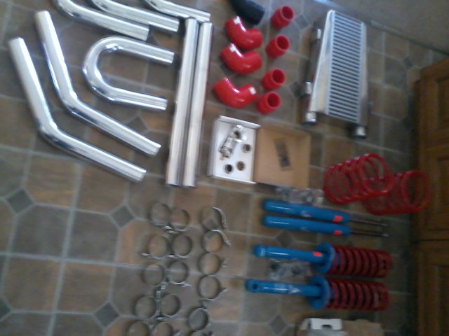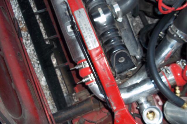 first off the car had no brakes when i received it prev owner said it needed brakes little did i know they were no longer working. THANKS ALOT! so she got 4 new rotors 4 new calipers, pads, power booster and master cyl. now she will stop very well. anyway i ran 10psi with no intercooler and a bosch bov stock injectors for many months on a fairly good tune average mpg was 27 or so and power was good. it was not long before good was not good enough and project red rocket began. starting with all poly bushings and tokico suspension.